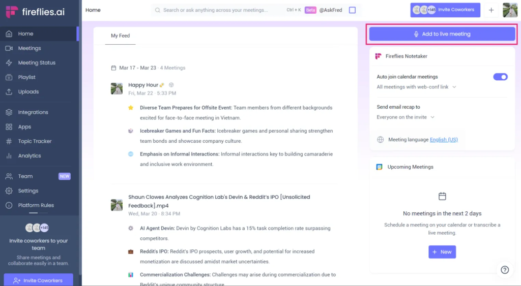 Fireflies.ai charges for every invited member, even view-only participants. On top of that, certain actions like applying templates or using the AskFred chatbot can incur additional costs. Total price can climb quickly as your team and usage grow.