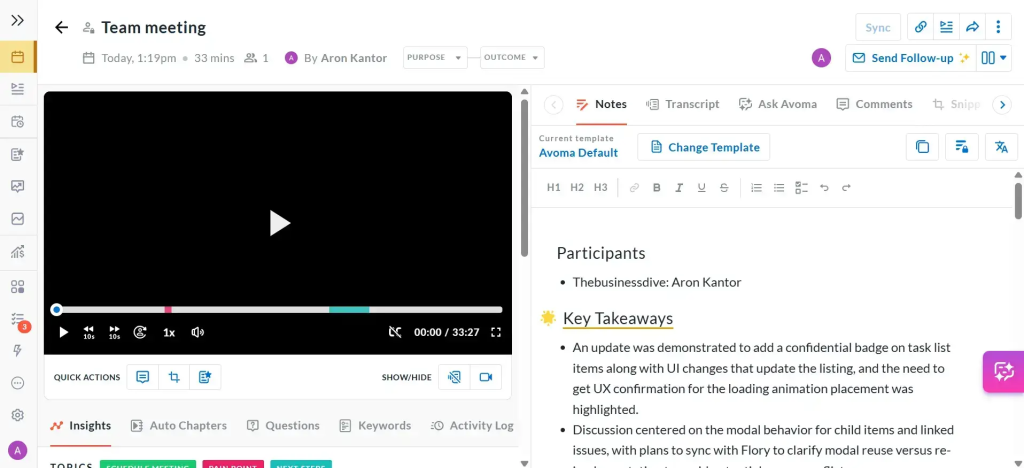 • Basic follow-up notes – Use AI-generated summaries and key points to remind the team what was discussed and agreed.