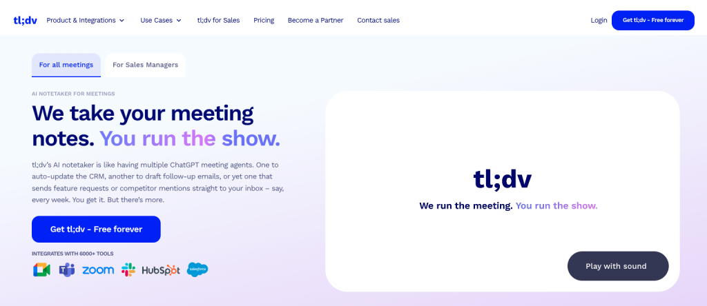 tl;dv is an AI-powered recorder for Google Meet, Microsoft Teams, and Zoom that delivers real-time, multi-language transcription with timestamped highlights and post-call AI summaries. Workshop and GTM teams use it to capture group discussions, surface themes, and tailor next sessions with a data-driven approach. A built-in library makes past meetings searchable by keywords, while multi-meeting intelligence spots patterns and emails reports. Beyond transcription, tl;dv can auto-update CRM, generate follow-up emails, and support team collaboration with tagging and assignments. Note: advanced conversation analytics are limited, and the free plan caps features and storage.