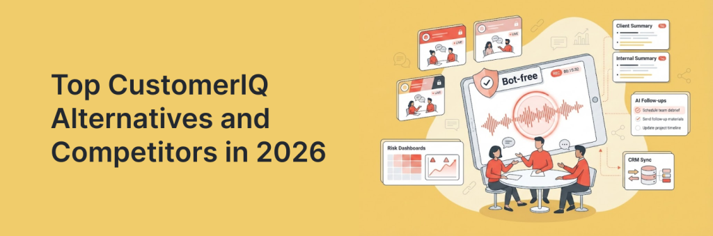 Looking for CustomerIQ alternatives in 2026? This list covers the top competitors teams are choosing for better call notes, stronger insights, and more automated follow-ups – so meetings don’t end as “great chat” and start turning into actions. Many of these tools now go beyond transcription with real-time coaching, deal signals, and workflow automations that reduce manual admin work. Let’s dive in!