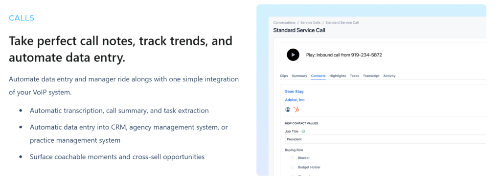 - CRM-first execution and field mapping – If the goal is pipeline hygiene, confirm how deeply the tool supports CRM updates: mapping call outcomes to fields, updating the right objects, and handling edge cases (multiple contacts, multiple deals). Ideally, you can set review/approval rules so automation doesn’t create noisy or incorrect CRM data.