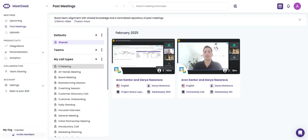 MeetGeek is a transcription-first recorder that upgrades workflow, not just accuracy. It captures Zoom, Teams, and Google Meet calls in 50+ languages, then turns them into editable summaries with tasks, next steps, concerns, facts, and decisions. During the call it tracks talk time, sentiment, and participation, making follow-ups smarter and coaching actionable without extra tools. Afterward, notes and snippets are easy to share, and a searchable library with folders, filters, and auto-detected meeting types keeps sales calls, 1‑on‑1s, and team sessions organized.